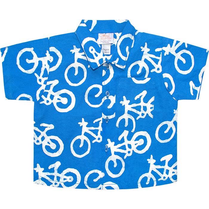 Babies: Button Down Shirt: Bikes – Blue-Organic: 18M